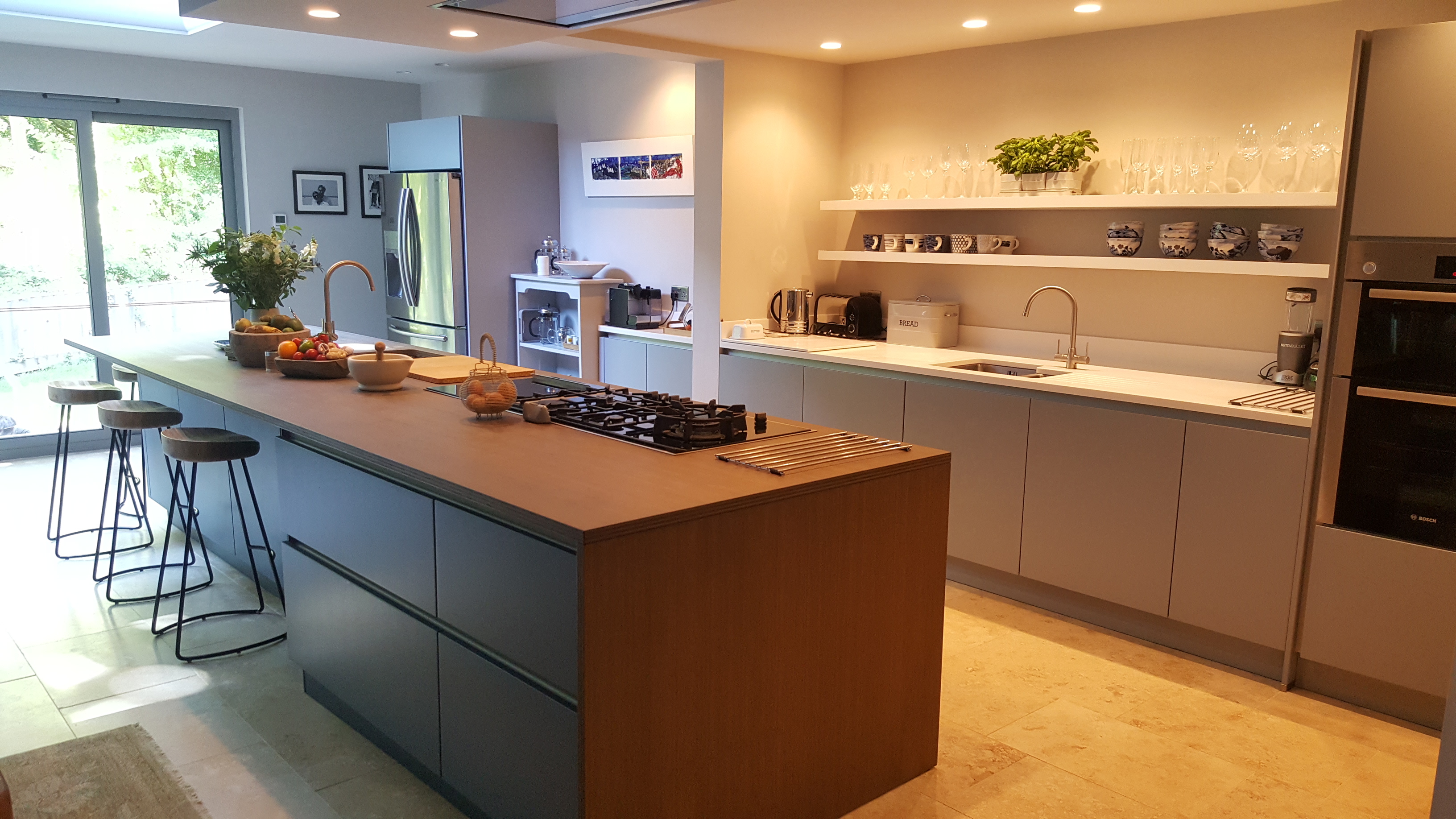 Our Matrix-Art handless system combined with a dark natural bamboo worktop
