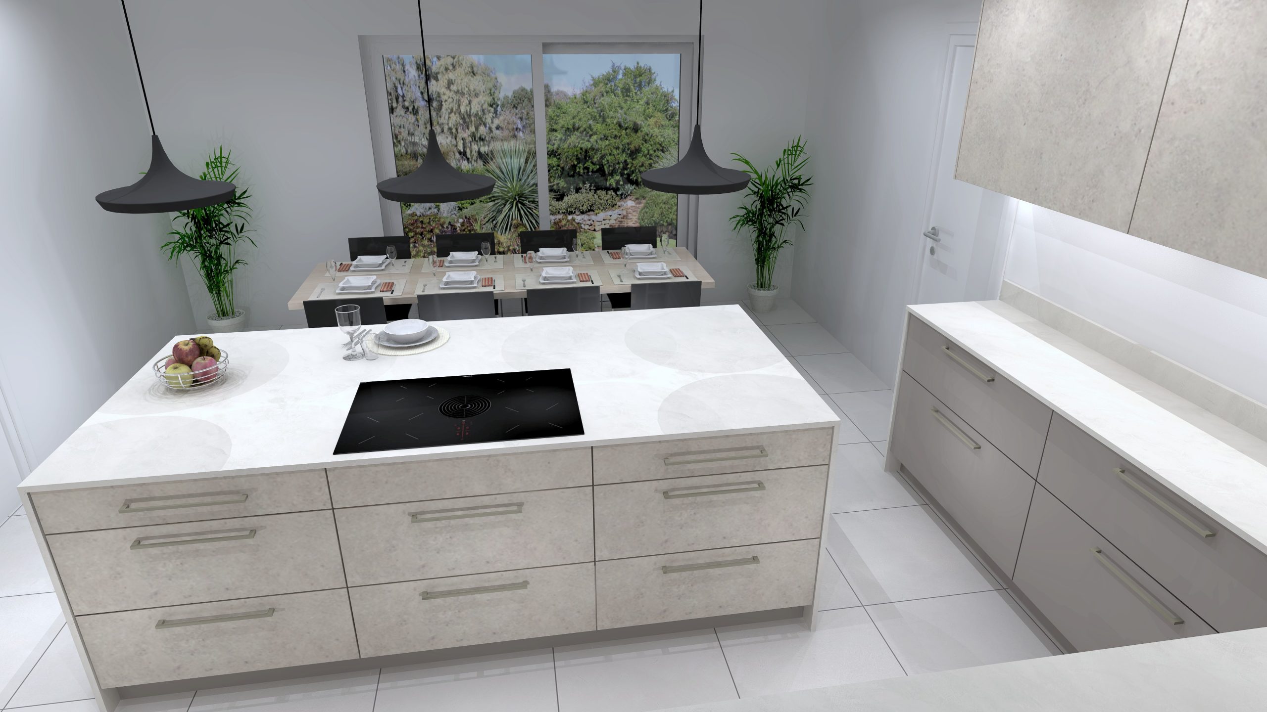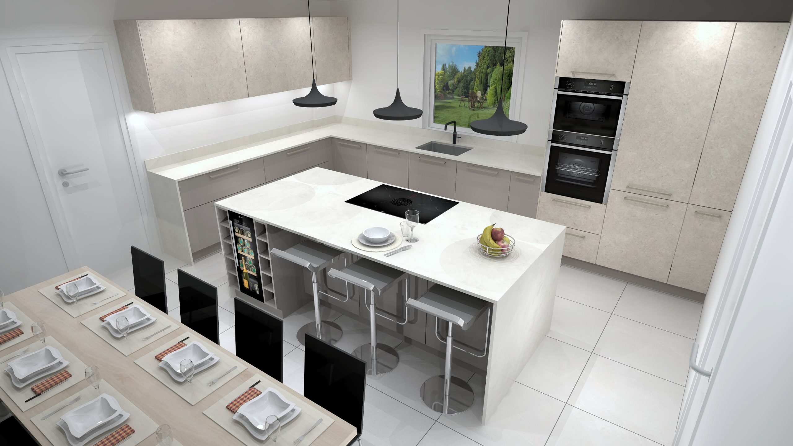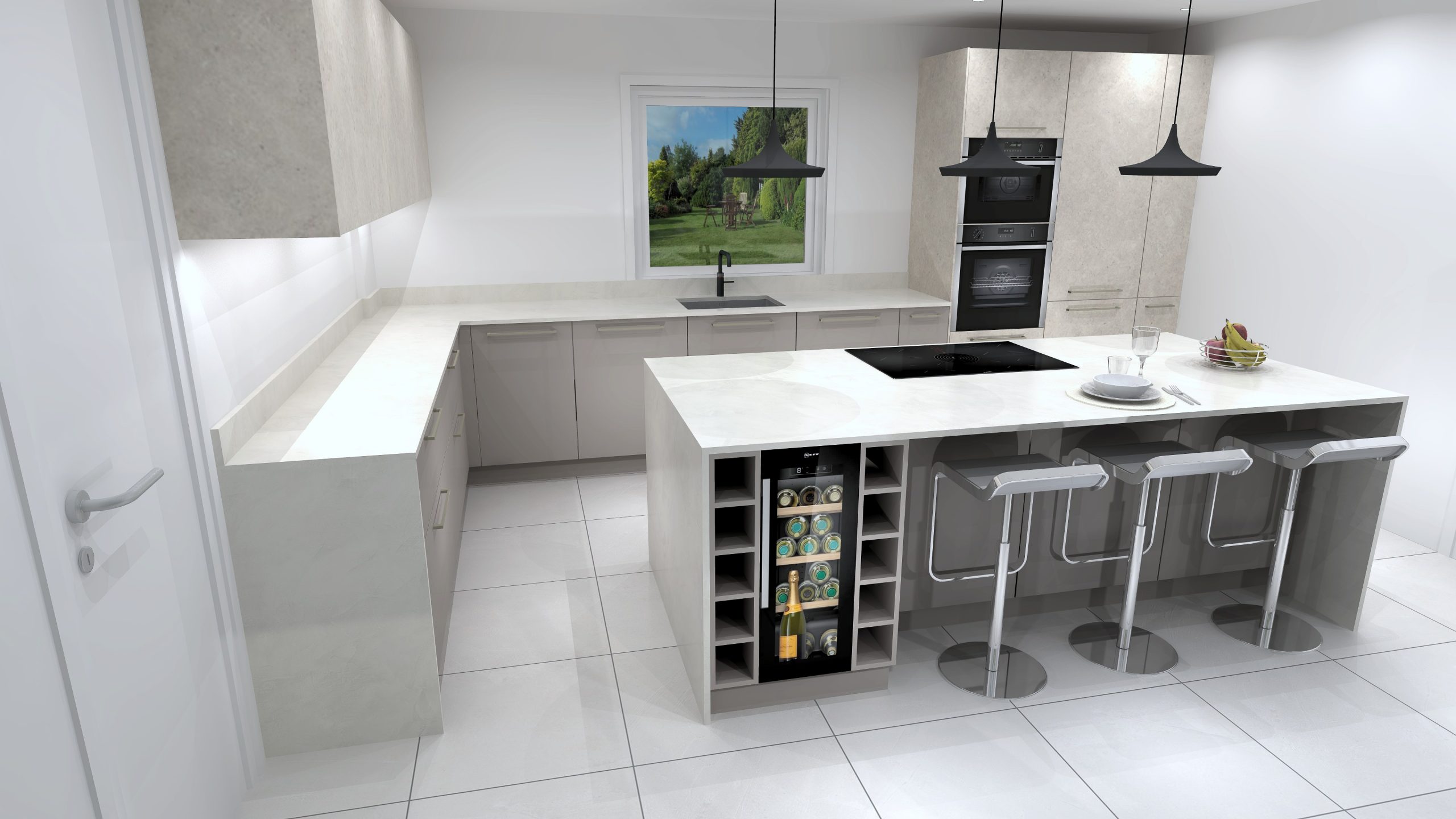 Nolte anthracite cement cabinets, white concrete laminate worktop, appliances, project management & installation £8000 – £9000