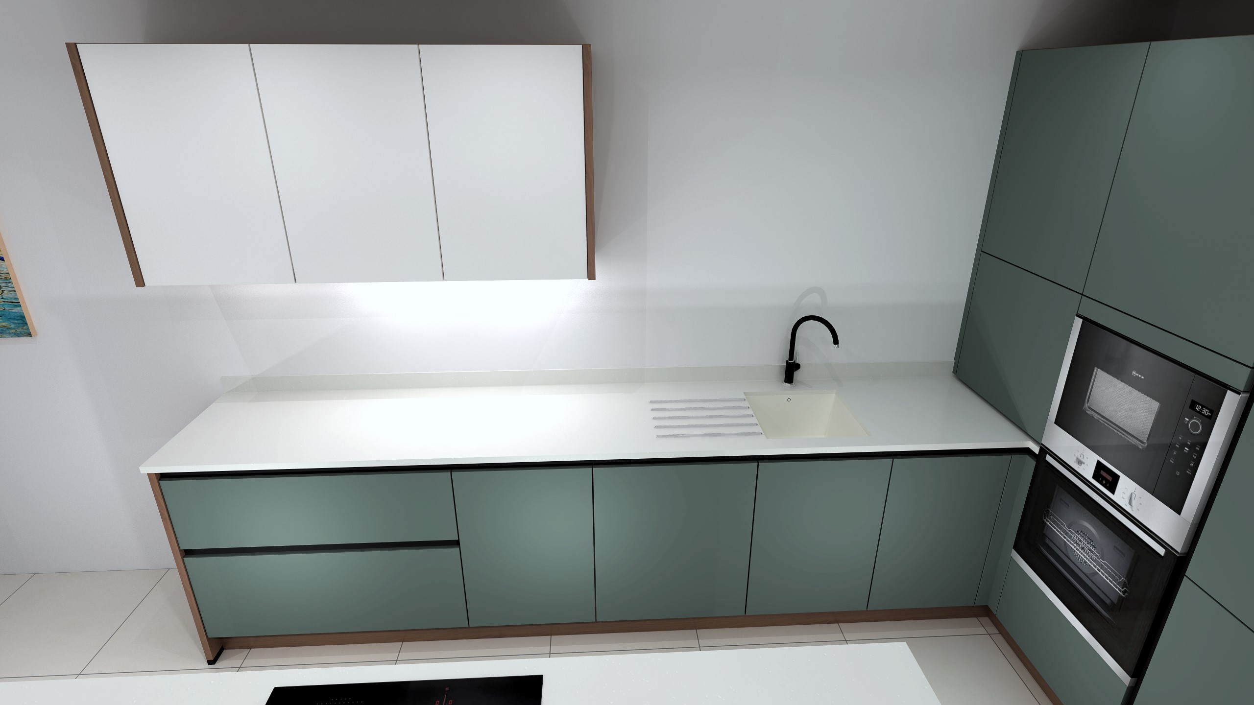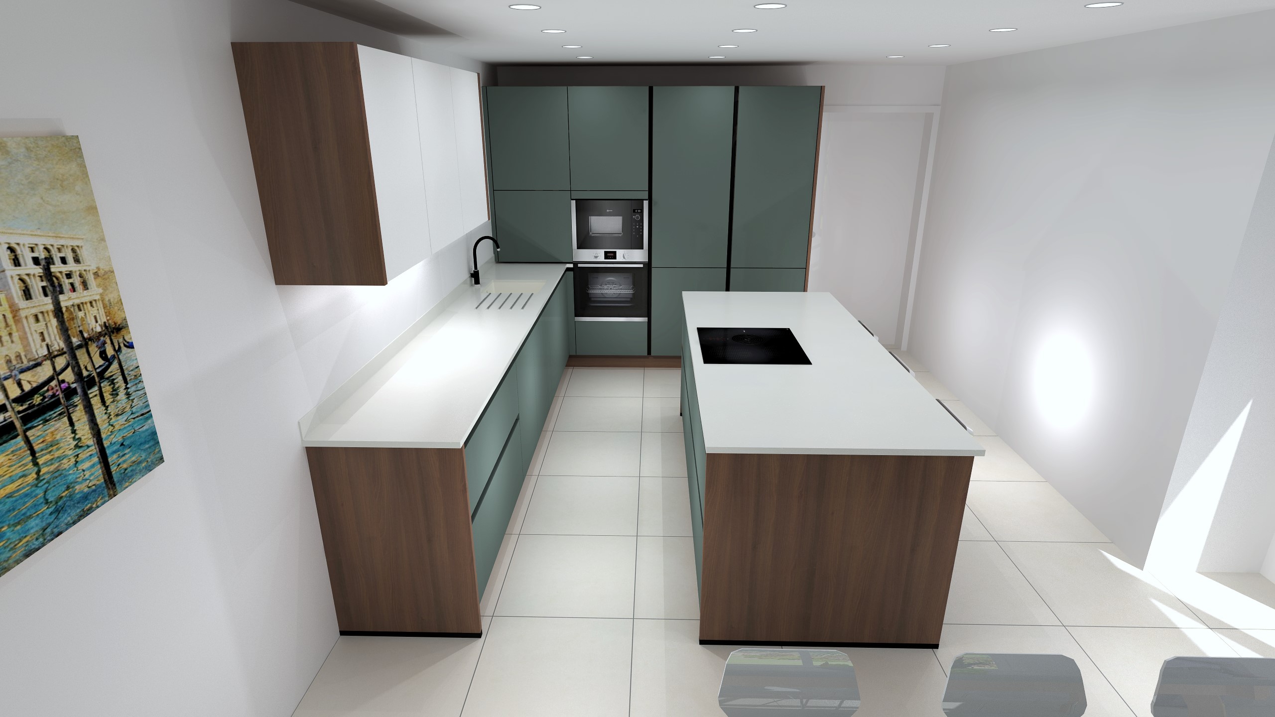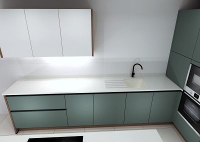 Nolte Manhattan black green, white & walnut – Cabinets, laminate worktop, project management & installation £16,000 – £17,000.